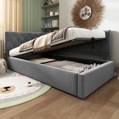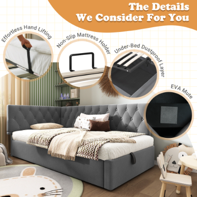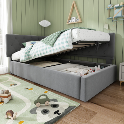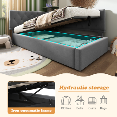 - 【Under-bed Storage Function】The hydraulic storage compartment under the bed offers spacious and concealed storage space, especially suitable for small apartments. The practical drawstring opening and closing design allows for easy access to the storage compartment and removal of items. The dust-proof cloth under the bed ensures that the storage space is always clean and tidy.