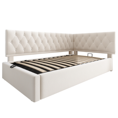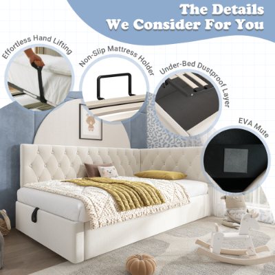 Product Name:Daybed Upholstered Bed with Storage, 3FT Single Sofa Bed 90 x 190 cm, Ottoman Bed with Hydraulic Storage, Metal Slatted Bed Frame, Velvet, Beige (No Mattress)