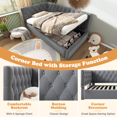 Daybed Upholstered Bed With Storage, 3FT Single Sofa Bed 90 X 190 Cm, Ottoman Bed With Hydraulic Storage, Metal Slatted Bed Frame, Velvet, No Mattres
