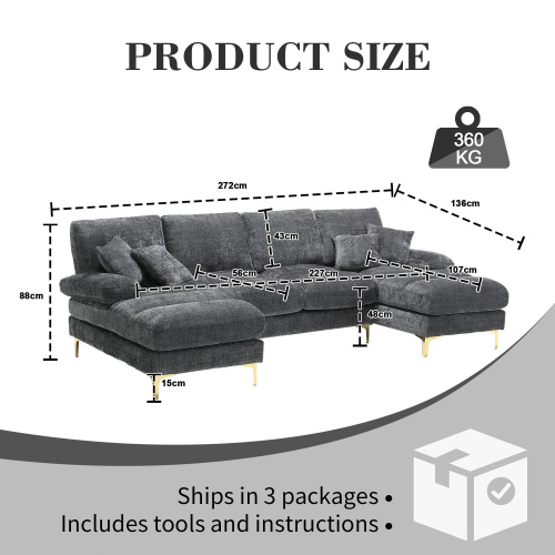 Product Name:GOMYWAY Sectional Couches for Living Room Modular Sofa with Double Chaise U- Shaped Sofa Set with Chenille Fabric for Home Furniture