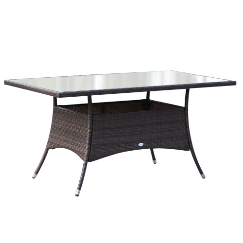 Outsunny 6 Seater Rattan Dining Set With Cushions, Rattan Garden Furniture Set With 6 Armchairs, Rectangular Glass Top Table, Outdoor Dining Table And Chairs, Brown